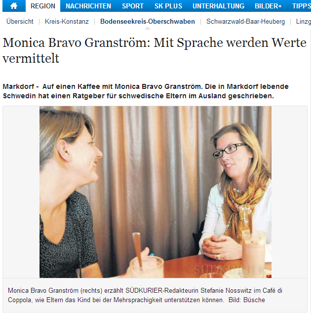 Interview about I love svenska in Südkurier 2013-11-25 Monica BG / November 25, 2013 http://www.suedkurier.de/region/bodenseekreis-oberschwaben/markdorf/Monica-Bravo-Granstroem-Mit-Sprache-werden-Werte-vermittelt;art372484,6484827 Share this: Click to share on X (Opens in new window) X Click to share on Facebook (Opens in new window) Facebook Like Loading...
